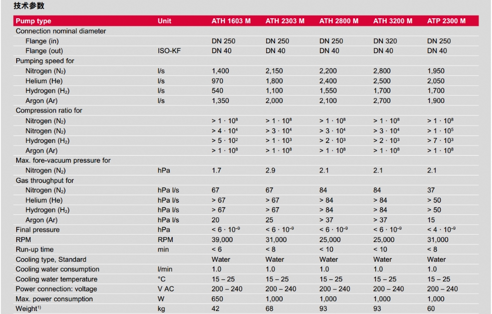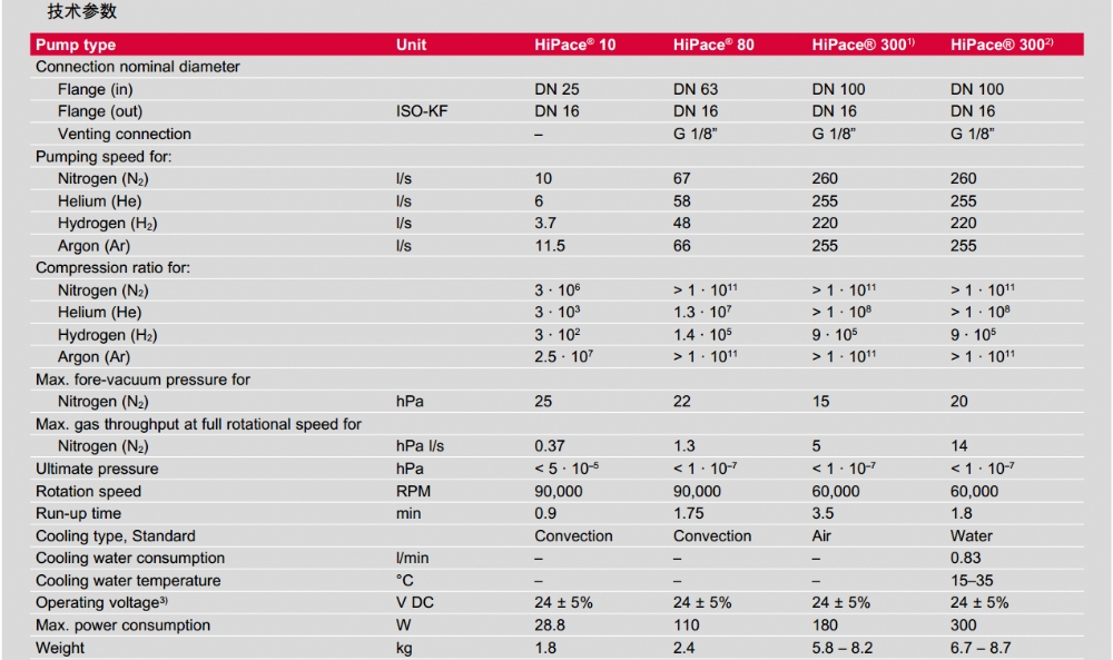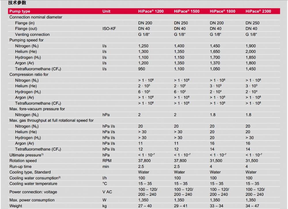 复合轴承涡轮分子泵 抽速等级在1000 - 2000 L/S 的紧凑型 产品型号:HiPace 1200/Hipace 1500/Hipace 1800/Hipace 2300 |